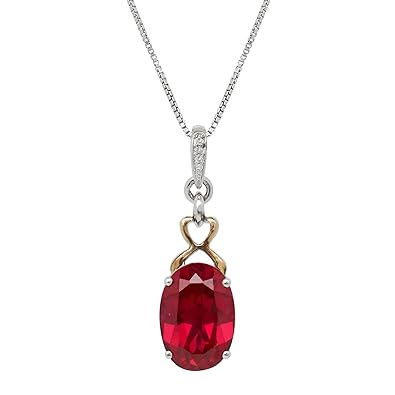 7 ct Created Ruby Drop Pendant Necklace with Diamonds in Sterling Silver & 14K Gold