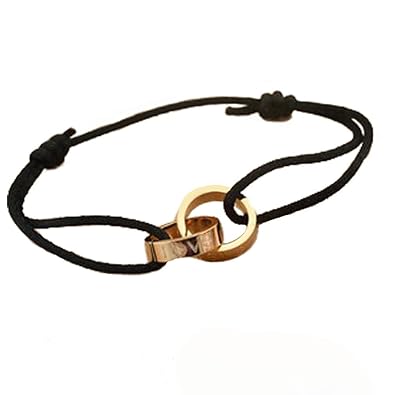 Baoli Titanium Steel Handmade Red String Rose Gold Love Loop Braid Rope Bracelet Adjustable