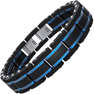 COOLMAN Men Bracelets Blue&Black Adjustable Bracelet for Men 8.5-9 Inch (With Branded Gift Box