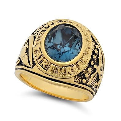 Large 15mm 14k Gold Plated Simulated Sapphire Blue CZ Military Ring + Microfiber Jewelry Polishing Cloth