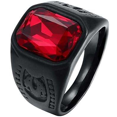 LWLH Mens Vintage Square Ruby CZ Crystal Stone Titanium Steel Ring Band Gothic Biker Knight Red Black