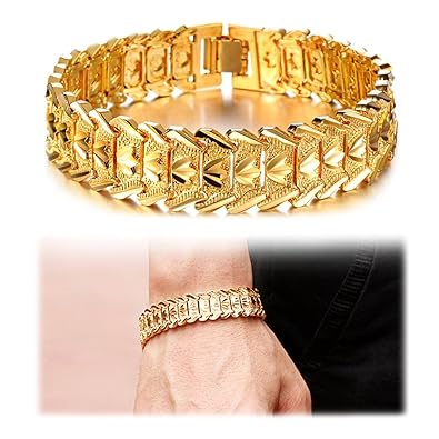 Suyi Men's 18K Gold Plated Link Bracelet Classic Carving Wrist Chain Link Bangle