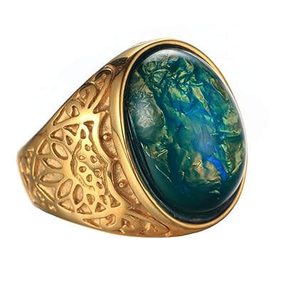 OAKKY Jewelry Men's Women's Stainless Steel Oval Gemstone Gold Plated Rings