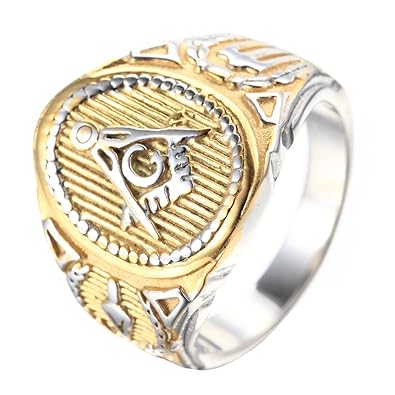 OAKKY Men's Stainless Steel Vintage Masonic Freemason Ring Biker Symbol Member Band
